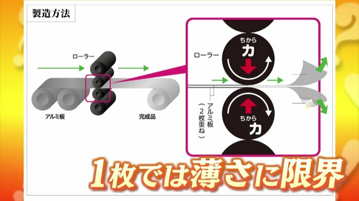 アルミ箔は非常に薄いため、1枚だけではそれ以上薄くするのに限界がある。