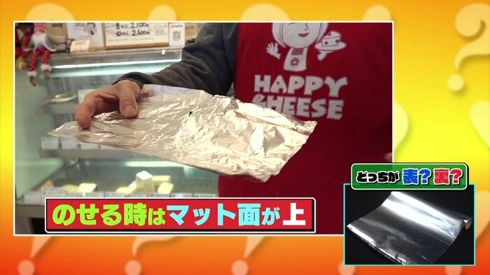 アルミホイルの表裏について街で聞いてみると「マットの方がくっつきにくくなってるのかなぁ」「テカテカの方が、熱が通りやすそう!」「おにぎりもこっち(マットな面)側で包んでいたから…」と、長年の習慣でマットな面を内側にして使ういて、意見はバラバラ…