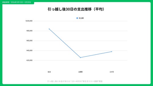 引っ越し後30日間で発生する支出は、時系列で見ると段階的に増加する傾向がありました。