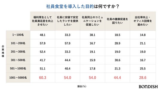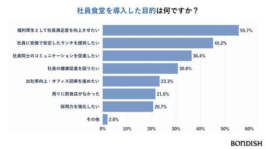 ・社員食堂導入の目的で最も多かったのは「福利厚生の強化」