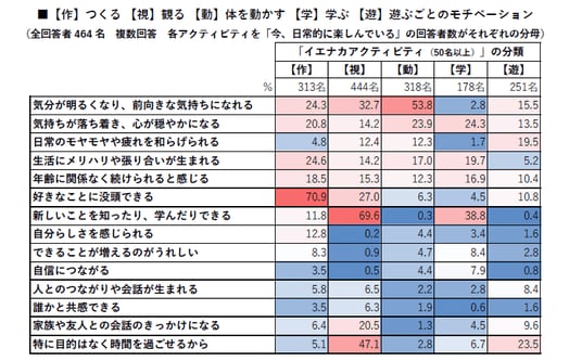 頭を使うこと、創作活動、エンタメ活動が上位に。
