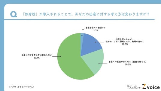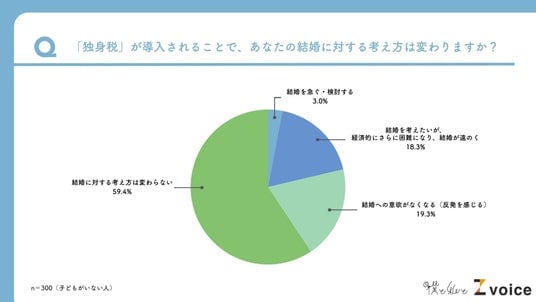 「独身税」で結婚・出産を「検討する」はわずか3%前後。逆に約20%が「意欲がなくなる」という回答に