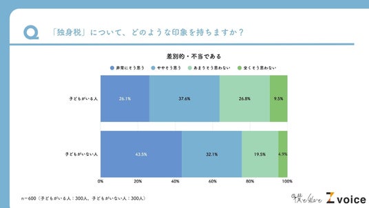 子どもがいない人の75.6%が「差別的・不当」と回答。子どもがいる人でも6割超