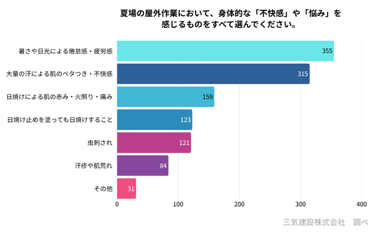 Q2:夏場の屋外作業において身体的な「不快感」や「悩み」を感じるものをすべて選んでください。
