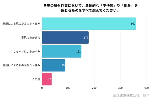 Q3:冬場の屋外作業において身体的な「不快感」や「悩み」を感じるものをすべて選んでください。