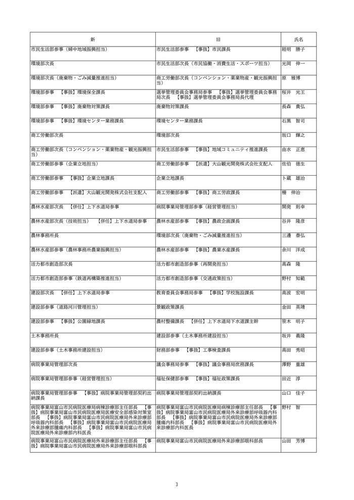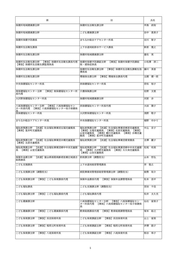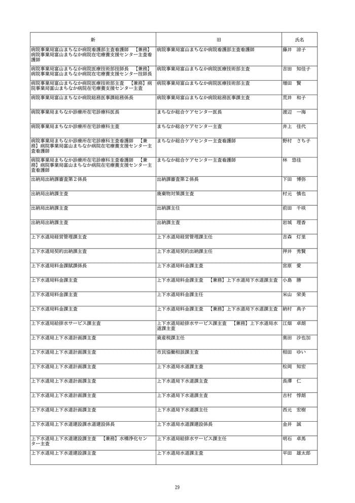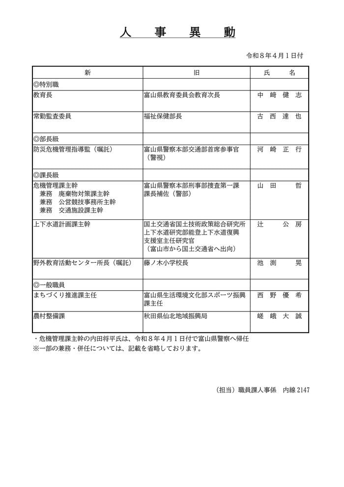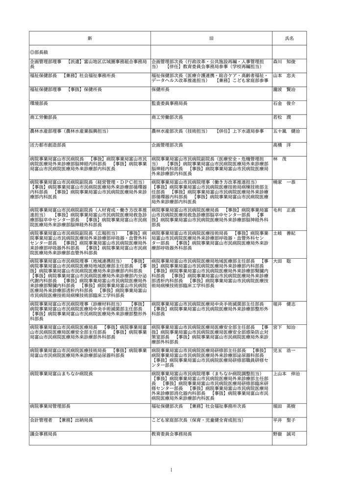 富山市は、2026年4月1日付けの定期人事異動を発表しました。