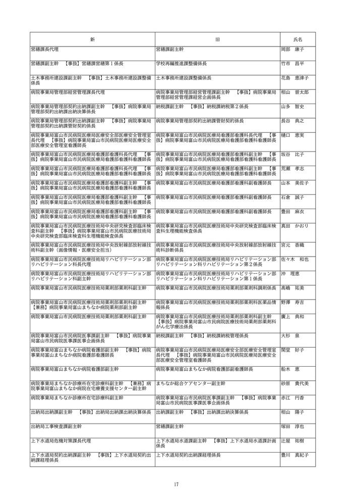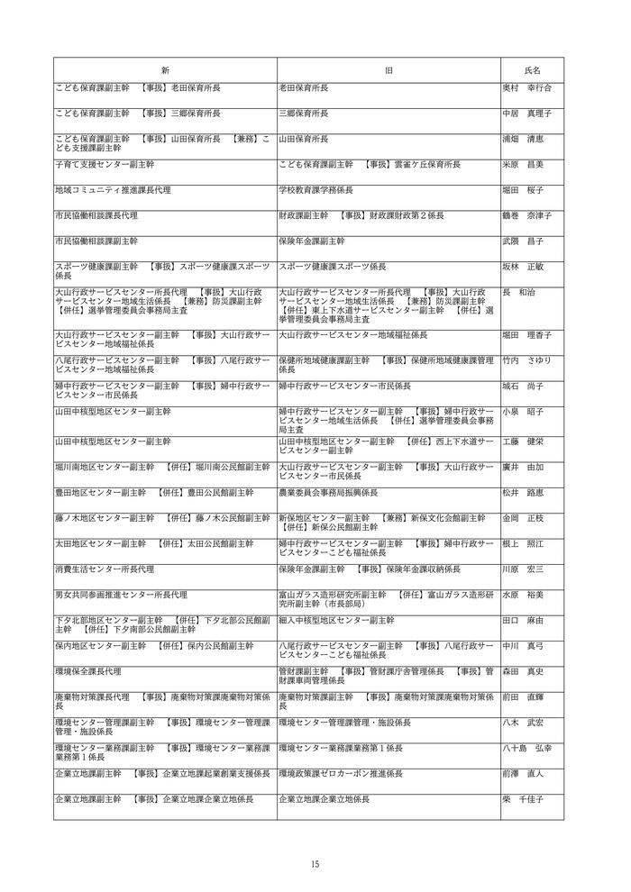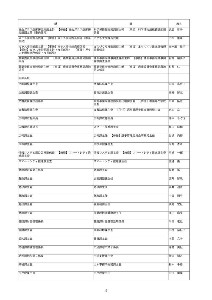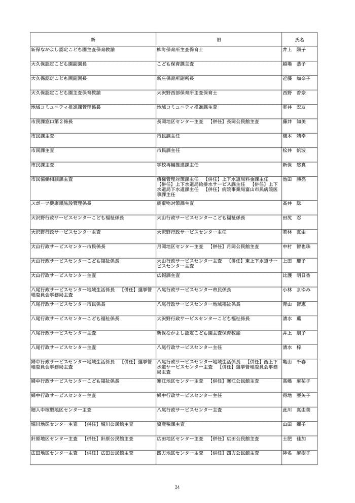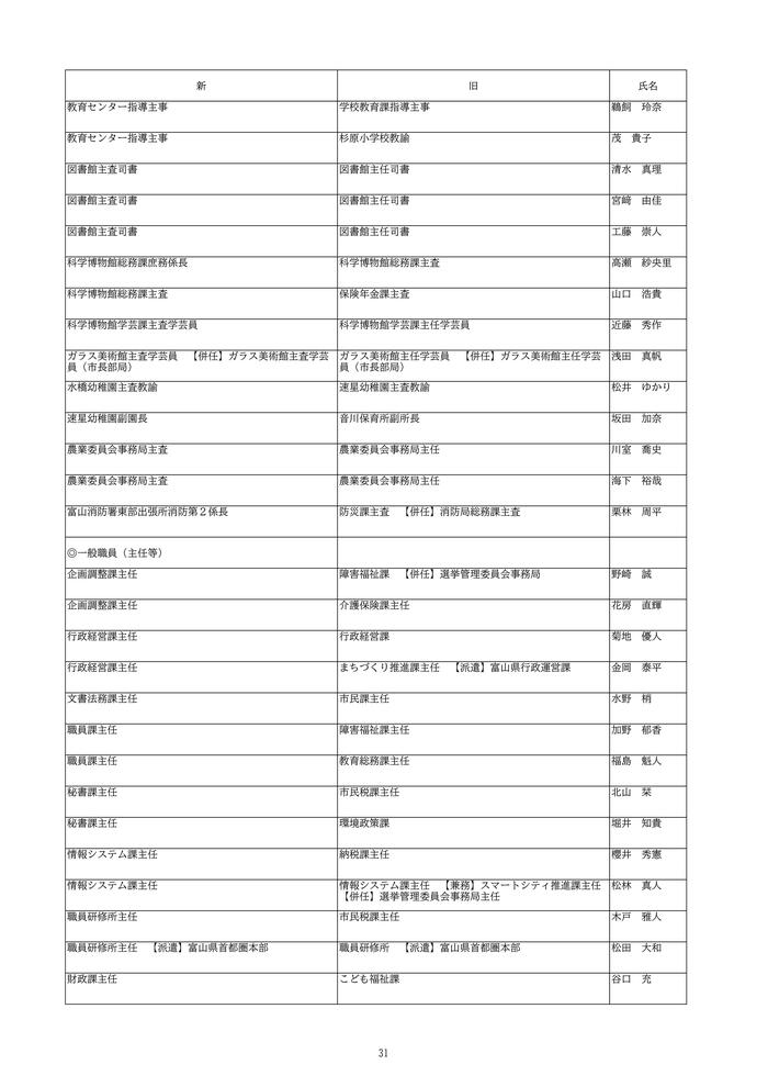 富山市は、2026年4月1日付けの定期人事異動を発表しました。