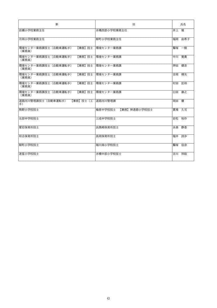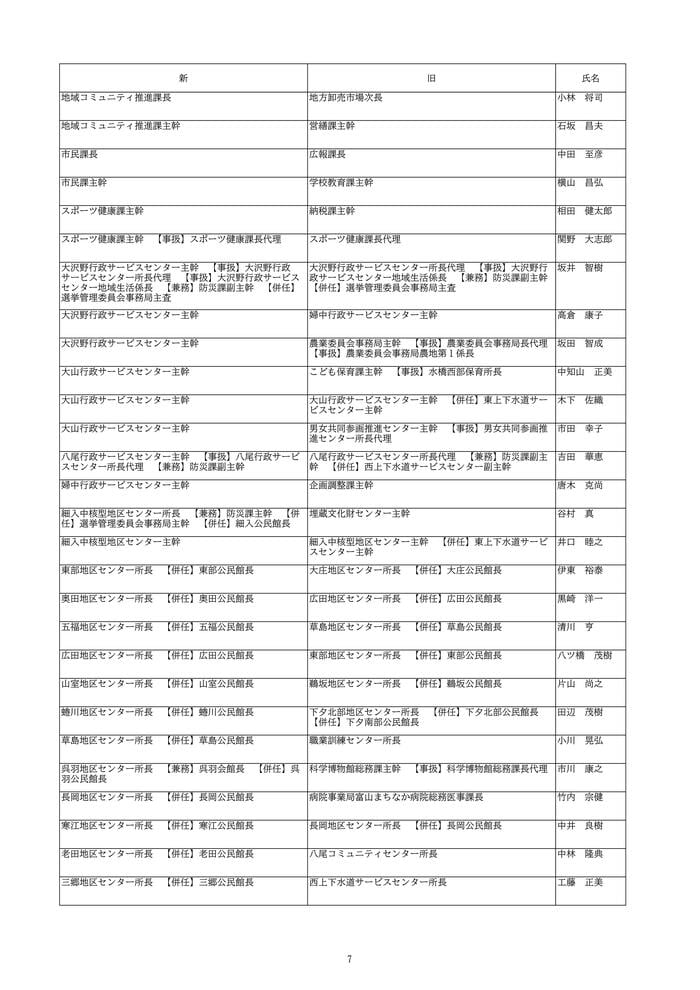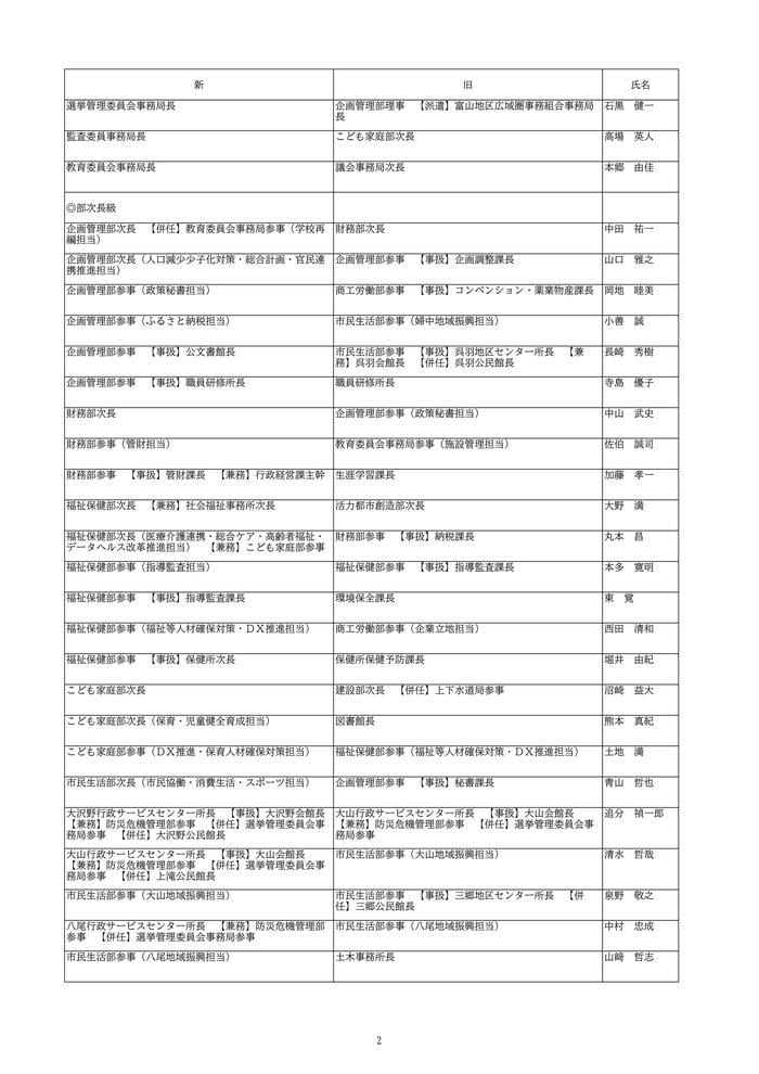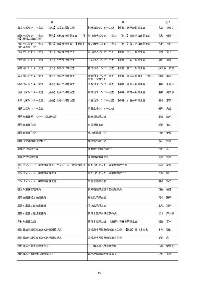 今回の異動者数は1407人で、昇任者は295人にのぼり、2005年の市町村合併後、21回の定期異動の中で11番目に多い規模となっています。