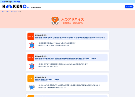 HOKENO:https://hokeno.tokiomarine-nichido.co.jp/