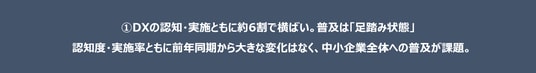 1.DXの認知・実施ともに約6割で横ばい。普及は「足踏み状態」