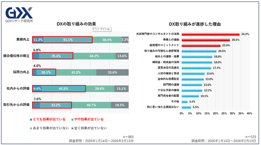 2.DX実践企業の6割が「業績向上」を実感。進捗の最大理由は「外部専門家の活用」。