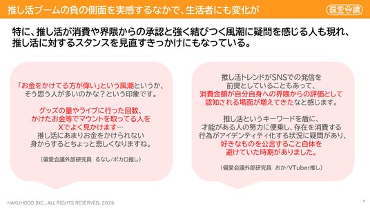・推し活ブームの負の側面を実感するなかで、生活者にも変化が