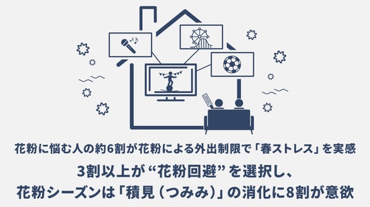 花粉に悩む人の約6割が花粉による外出制限で「春ストレス」を実感。3割以上が“花粉回避”を選択し、花粉シーズンは「積見(つみみ)」の消化に8割が意欲【花粉シーズンの過ごし方に関する実態調査】