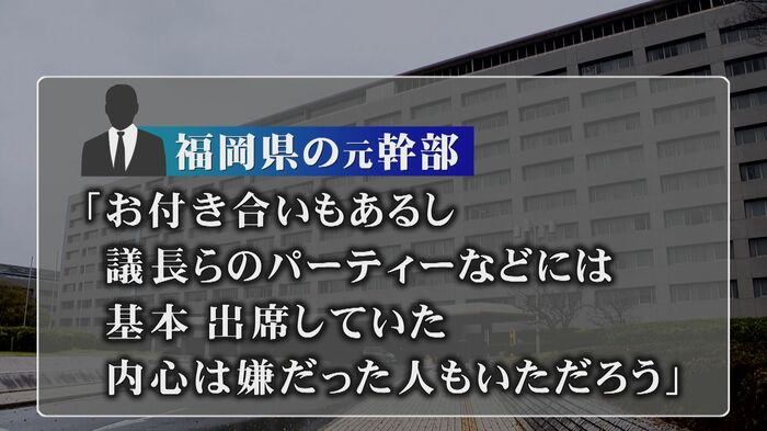 パーティー券の相場は、1人あたり2万円。数年前に定年退職した県の元幹部は、「お付き合いもあるし、議長らのパーティーなどには、基本出席していた。内心は嫌だった人もいるだろう」と振り返る。