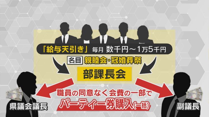 福岡県の幹部職員が加入する任意団体『部課長会』が、各職員の同意を得ないまま、給与から天引きした会費で、県議会議長などの“パーティー券”を一括購入していたことが分かった。