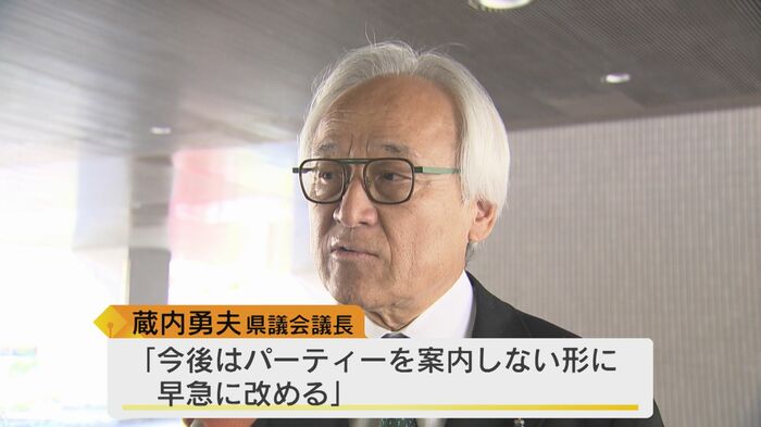 一方、県議会の蔵内議長は、取材に対し、「部課長会という存在は知らなかった。今後は、パーティーを案内しない形に早急に改める」とコメントした。