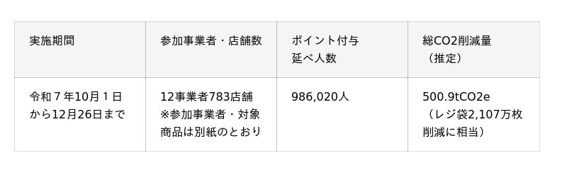 令和7年10月から12月まで実施した、脱炭素につながる商品を購入した場合などにポイントを上乗せするキャンペーン「かながわCO2CO2(コツコツ)ポイント+(プラス)」に、約100万人の方が参加され、レジ袋約2,100万枚分に相当するCO2削減効果がありました。