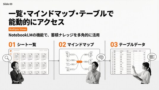 NotebookLMの機能を使えば、単に生成AIとの対話だけでなく、ナレッジをあらゆる形式で出力させることも可能になる。