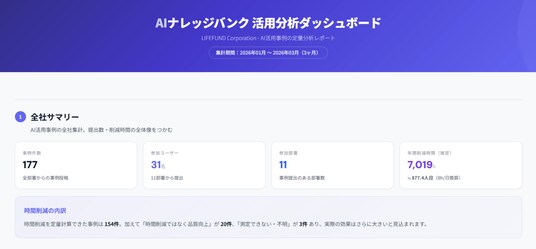 株式会社LIFEFUND(本社:静岡県浜松市、代表取締役:白都卓磨)は、2026年1~3月の3ヶ月間に実施したAI活用推進の定量データを公開します。