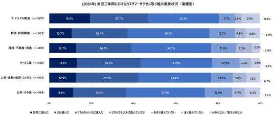 (図10:[2026年]直近三年間におけるカスタマーサクセス取り組み進捗状況(業種別))