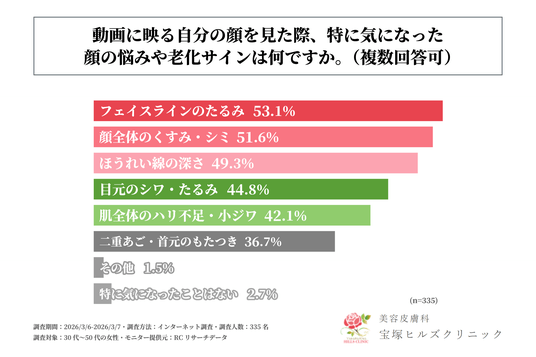 30代~50代の女性の65%以上が、動画に映る自身の顔が老けて見えると感じた経験がある!宝塚ヒルズクリニックが「動画での老け見えが美容意識に与える影響に関する調査」を実施!