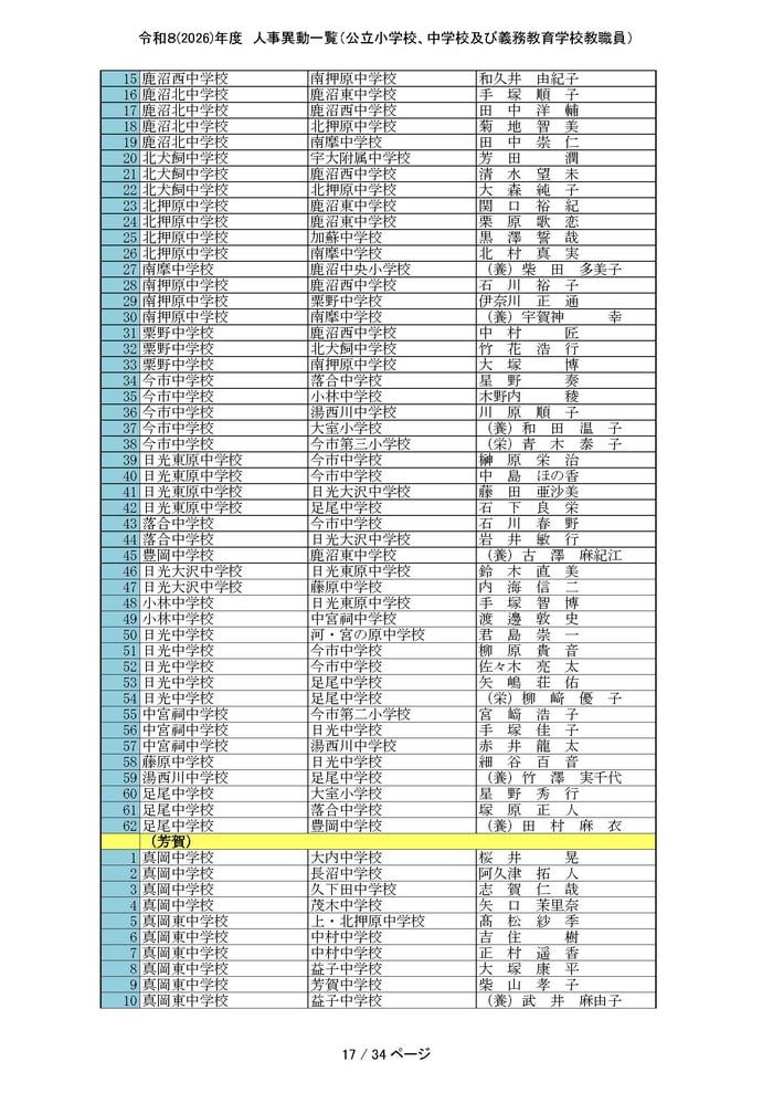 中学校一般教員異動