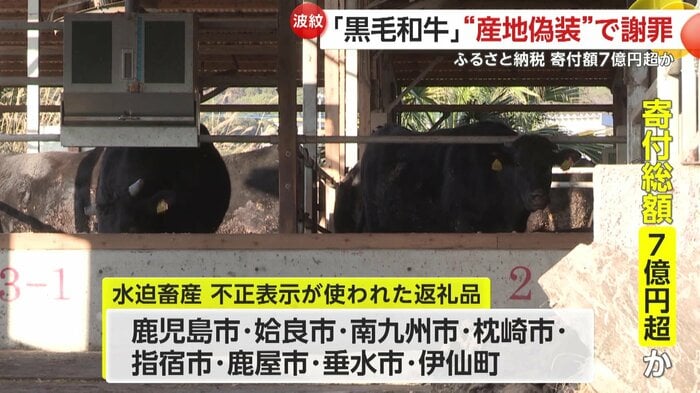ふるさと納税の返礼品に関する不正問題を受け、畜産会社の代表が自治体を訪れ謝罪した。この会社は牛肉の産地や種類を偽り、複数の自治体に返礼品として提供していた。寄付額の総額は7億円を超える可能性があるという。
