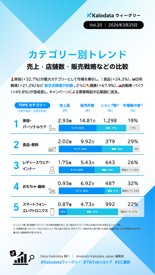 日本TikTokショップ市場週次レポート(2026年3月16日~3月22日)