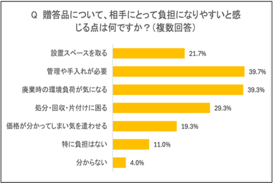 贈答相手の管理や廃棄時の環境負荷を気にする傾向にある