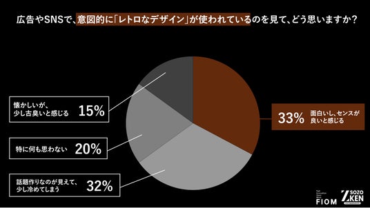 広告やSNSで意図的に「レトロなデザイン」が使われているのを見た際、「面白いし、センスが良いと感じる」層が33%いる一方で、ほぼ同数の32%が「話題作りなのが見えて、少し冷めてしまう」と回答しており、あざとい演出には厳しい目が向けられています。