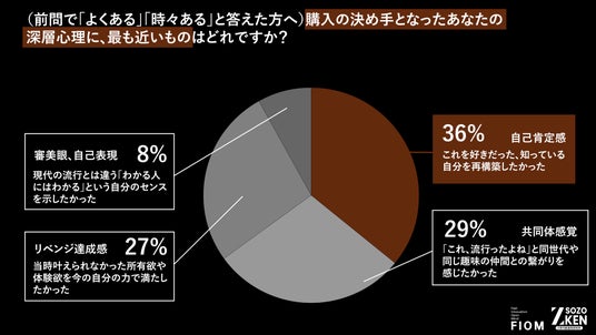 また、購買の心理として「自己肯定感」(36%)や「リベンジ達成感」(27%)が強く働いている点も見逃せません。