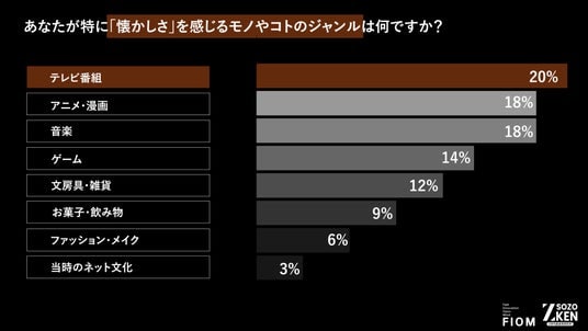ノスタルジーの源泉はエンタメ。Z世代の20%が「テレビ番組」、18%が「アニメ・漫画」「音楽」に懐かしさを実感。