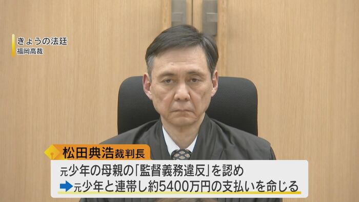 そんな思いで迎えた判決。福岡高裁の松田典浩裁判長は、一審判決を変更し、元少年の母親の『監督義務違反』を認め、元少年と連帯して約5400万円を支払うよう命じた。