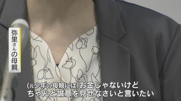 「本当に嬉しかったです。私たちが言っていることが正しかった。改めてそう思った。弥里の命を軽く扱われたような気がして、本当に苦しかった。元少年の母親には、お金じゃないけど、ちゃんと誠意を見せなさいと言いたい。自分が今までやってきたこと、私の娘は帰って来ないから。帰って来ないですよね、いくら裁判勝ったって、お金をもらったって」