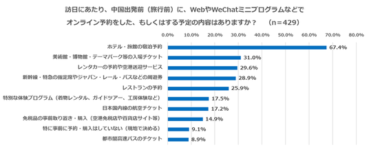 ■「訪日にあたり、中国出発前(旅行前)に、WebやWeChatミニプログラムなどでオンライン予約をした、もしくはする予定の内容はありますか?」(回答者数:429人、複数回答)