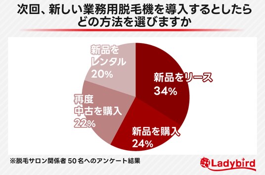 「あなたの人生に驚きと笑顔を創る」をミッションに、業務用美容機器開発・製造・販売・卸業、エステ商材販売、サロン運営支援をしている株式会社レディーバード(本社:東京都品川区、代表取締役社長 横沢直希、以下、当社)は、中古の業務用脱毛機を導入した経験のあるサロン関係者を対象に「コスト削減効果、故障実態などに関する調査」を実施しました。