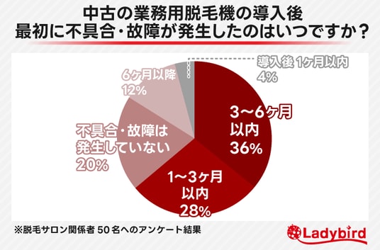 中古の業務用脱毛器の導入後、最初に不具合・故障が発生したのはいつですか?