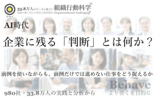 980社・33.8万人の実践と分析をもとに、AIでは代替しにくい「判断」の中身を整理。事実確認・構造把握・判断理由の言語化・振返り更新という4要素と、判断の種類ごとの違いから、人に残る仕事の核心を定義