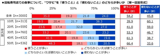 - 「回転寿司店ではワサビを使うことが多い」5割半、20代以下では“使わない派”が多数