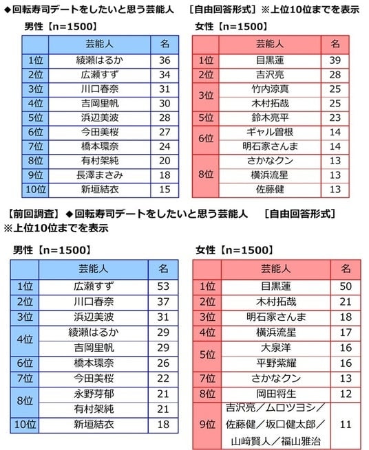 “回転寿司デート”をテーマに、イメージに合う有名人について聞きました。