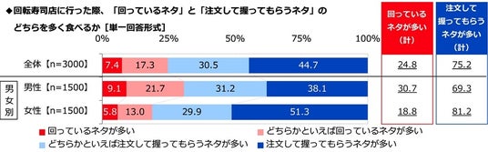 - 「回っているネタより注文して握ってもらうネタを多く食べる」7割半、女性では8割強
