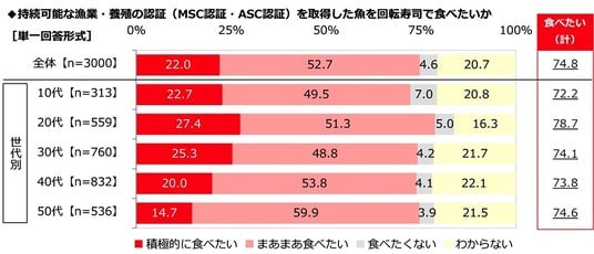 - 「MSC認証・ASC認証を取得した魚を回転寿司で食べたい」7割半