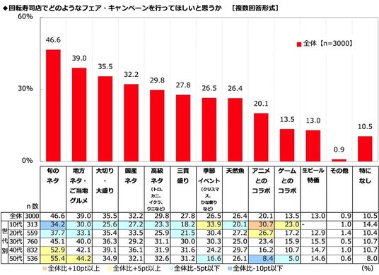 - 回転寿司店で行ってほしいフェア・キャンペーン