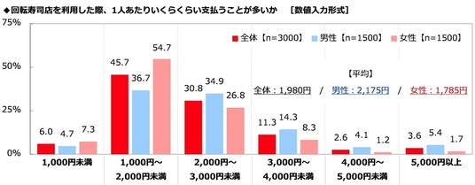 - 回転寿司店で支払う金額は? 男性は平均2,175円/人、女性は1,785円/人