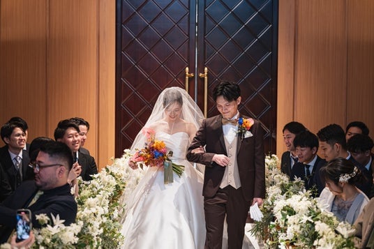 バージンロードは新婦父と歩くもの、といった昔のしきたりにとらわれずご兄弟と歩くなど、アレンジを加えるお客様が増えているように感じます。大切な人と歩み出す瞬間をゲストに見てもらうための進行として、お客様にご提案するようにしています。(NEEDS広島 by T&G WEDDING/吉田 姫菜)