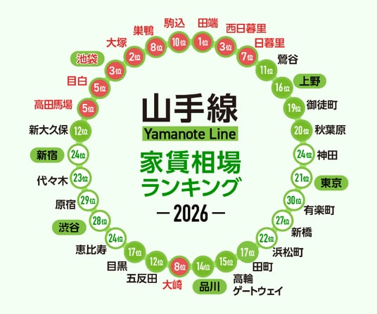 また、2025年版までは5位~7位だった大塚駅が今回は2位におどり出ていますが、家賃相場が以前よりも下がったわけではなく、ほかの駅の値上がり幅が大きいため相対的に順位がランクアップした様子です。ここ5年間の家賃相場を見ると、8万円台の駅があったのは2024年版まで。そして2025年版では9駅あった家賃相場9万円台の駅が今回は2駅のみに。都内の家賃相場の高まりも分かるランキングになりました。