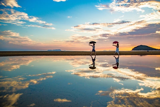 「日本のウユニ塩湖」として一躍全国区となった父母ヶ浜(ちちぶがはま)を擁する三豊市は、学生から絶大な支持を集めています。父母ヶ浜での撮影は、干潮と日の入りが重なる数十分間が勝負です。2026年は、単なる撮影スポットを越え、周辺の島々やうどん文化を組み合わせた「コスパ最強の周遊ルート」が確立されています。周辺の安価なグルメ環境や、ゲストハウスの充実も、学生の財布に非常に優しいです。