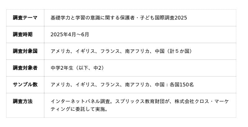 スプリックス教育財団 基礎学力と学習の意識に関する保護者・子ども国際調査2025