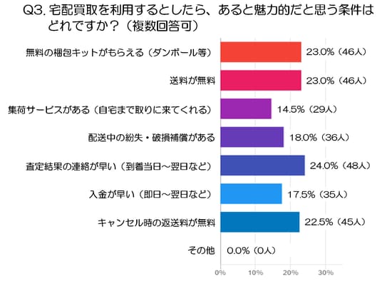 Q3.宅配買取を利用するとしたら、あると魅力的だと思う条件はどれですか?(複数回答可:注2)