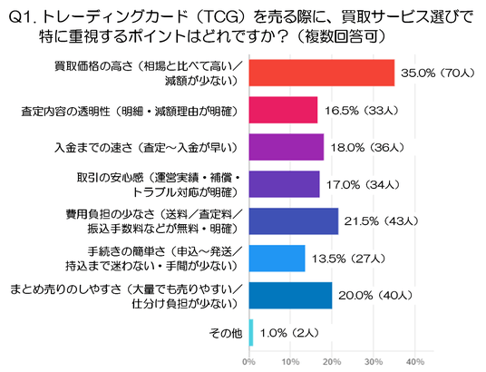 Q1.トレーディングカード(TCG)を売る際に、買取サービス選びで特に重視するポイントはどれですか?(複数回答可:注1)